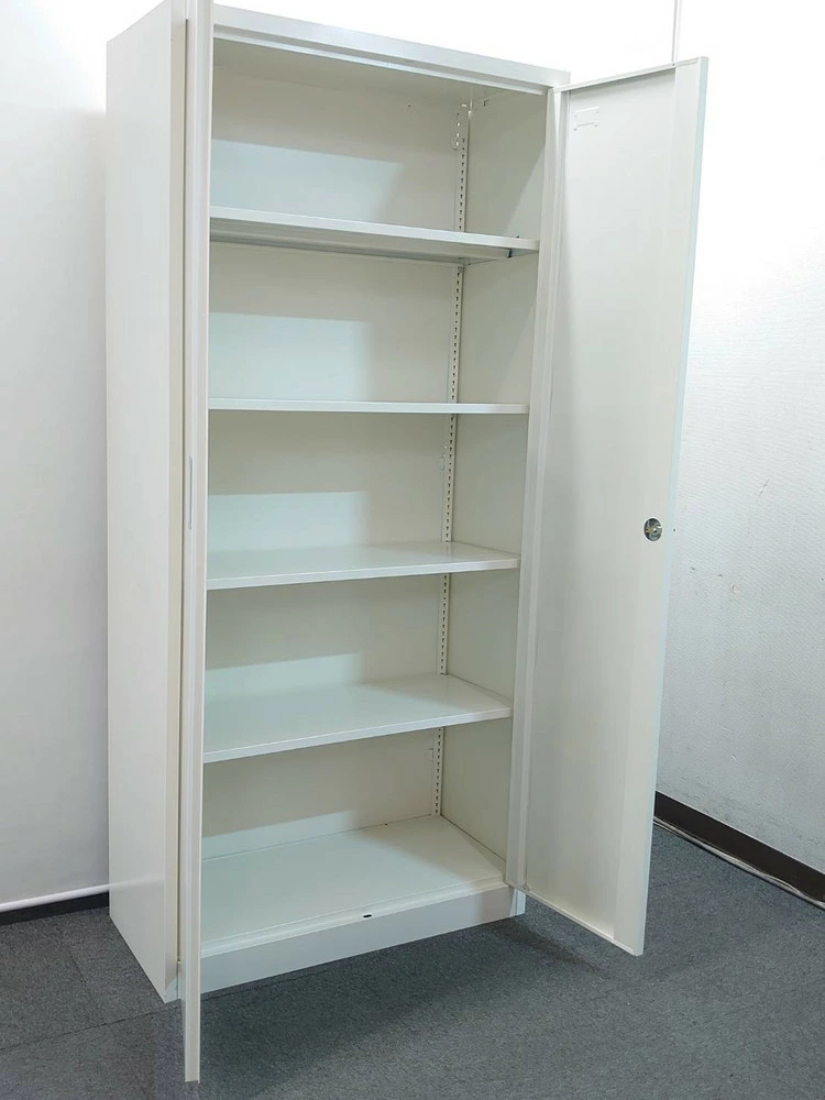 両開き書庫 スチール書庫 収納庫 キャビネット カギ付き ホワイト H1850 D380 W850 中古