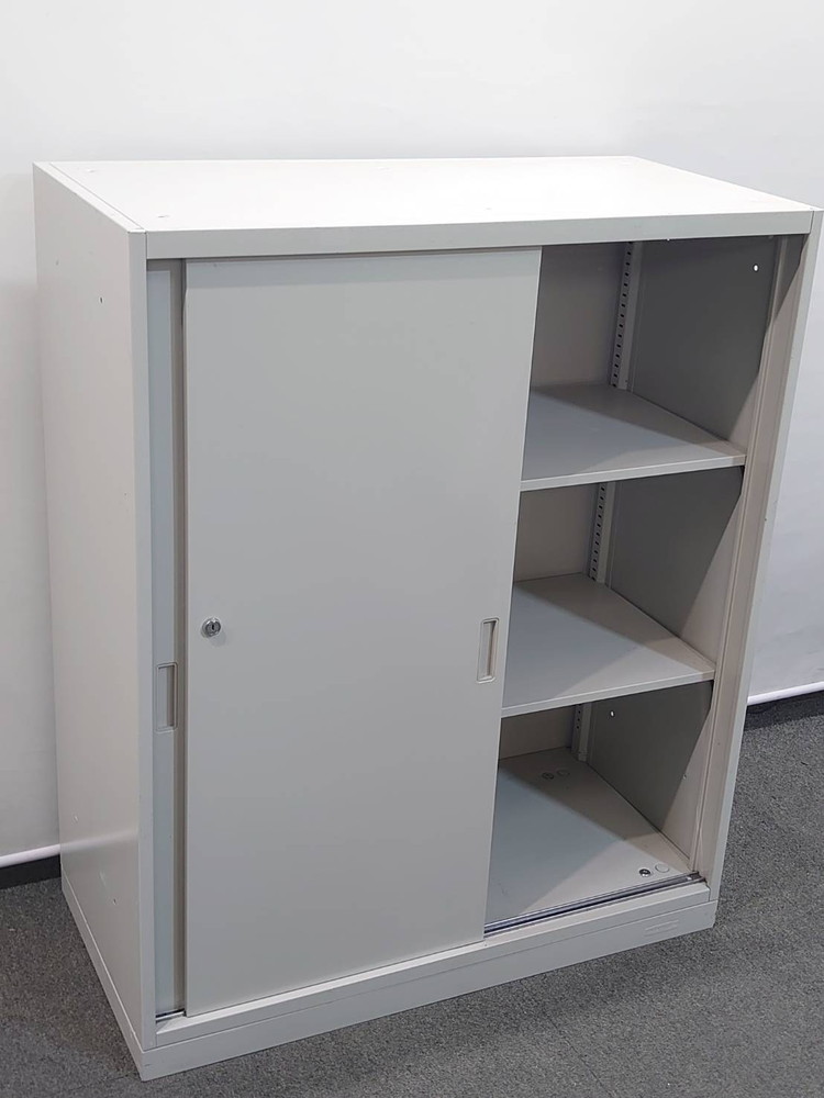 引戸書庫 オカムラ42 引き違いキャビネット 引き戸 書庫 鍵付き 中古