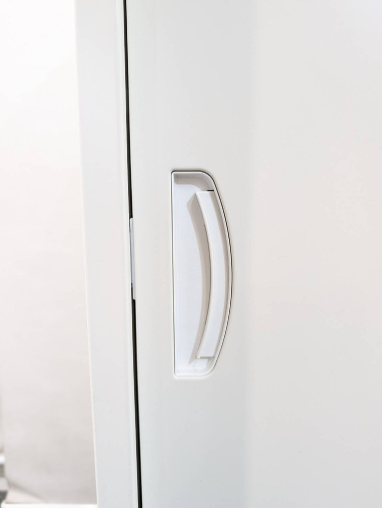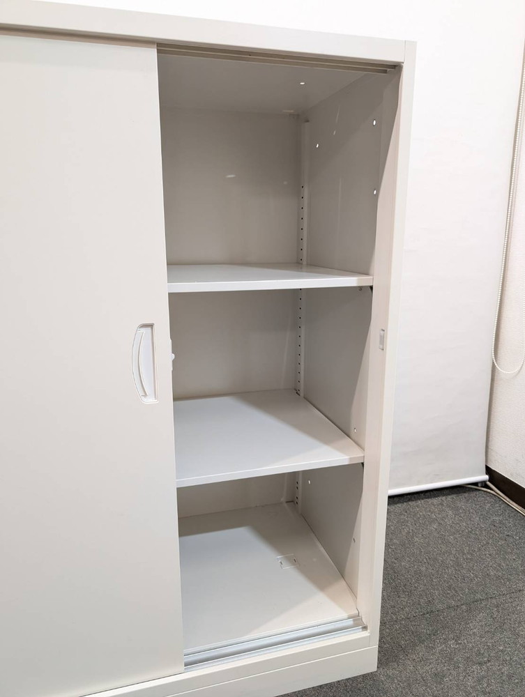 生興製クウォールシリーズの引き違い書庫は、スライド式扉で省スペースでも開閉がしやすく、効率的な収納が可能です。