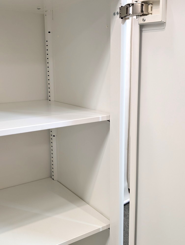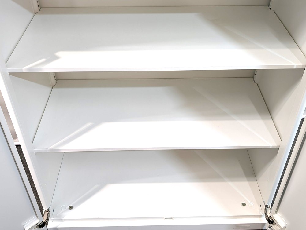 可動棚板により収納物に合わせたレイアウト調整が可能で、書類や備品の整理整頓に最適です。