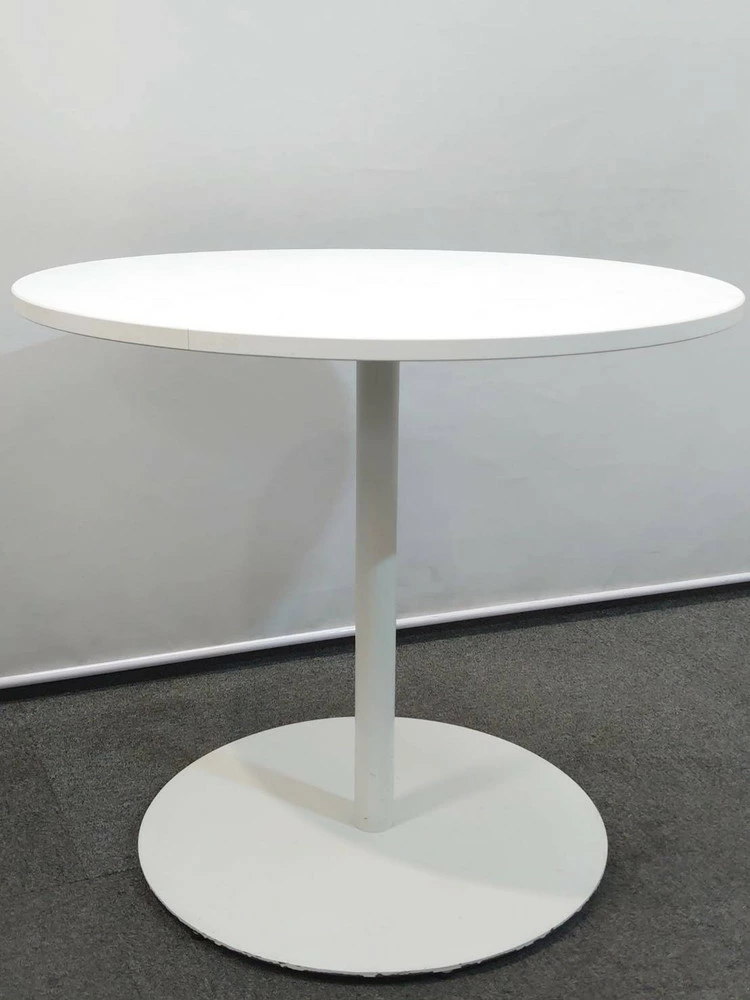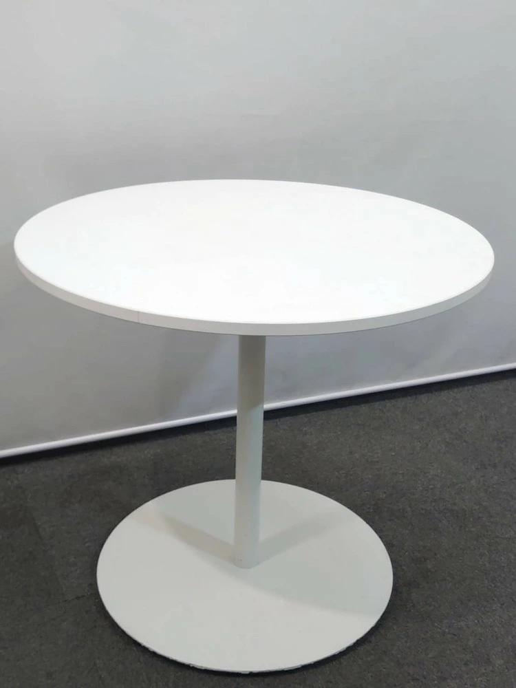 ライオン製の円型テーブルとウチダ ブルーメ会議チェアを組み合わせた3人用の会議セットです。テーブルは幅800mmのコンパクトサイズで、限られたスペースにも適しています。チェアは布張り座面にキャスター付きで、平行スタックが可能なため収納にも便利です。テーブルはホワイト、チェアはホワイト×ブルーの爽やかなカラーリングです。