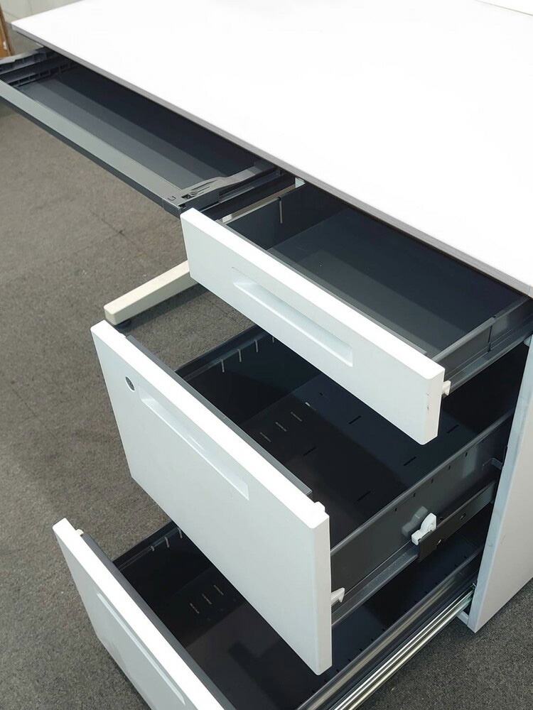 いずれもカギ付きで、書類や備品を安全に管理でき、コードホール付きのため配線もすっきり整います。