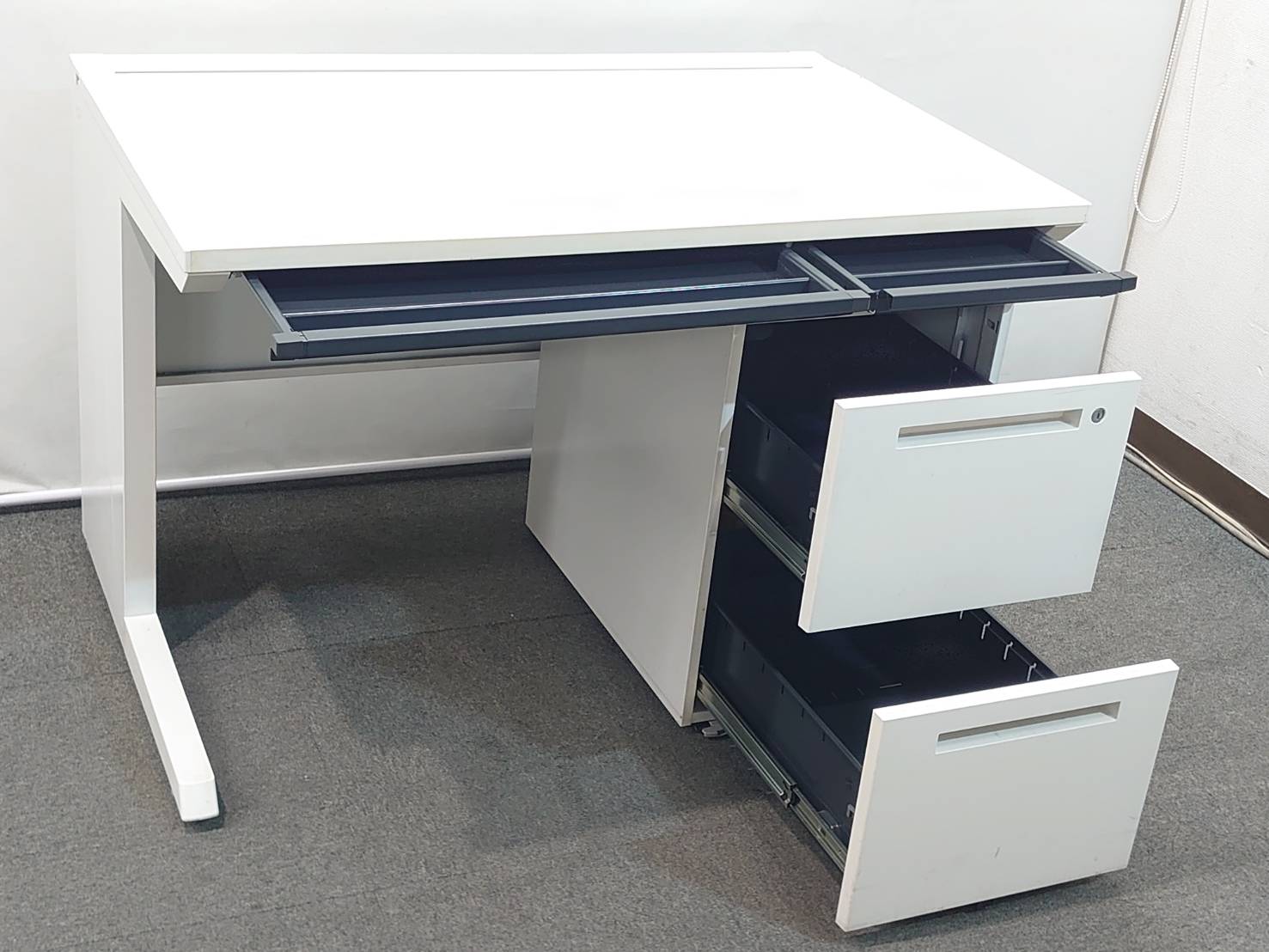 開業やオフィス新設におすすめの国産オフィスデスクセットです。イトーキ製CZRシリーズの片袖机(W1100mm)と2段ワゴンの組み合わせ。カラーはホワイト、カギ付きで安心。コードホール付きで配線もスッキリ。4人分セットで、レイアウトしやすく統一感のある空間を演出できます。