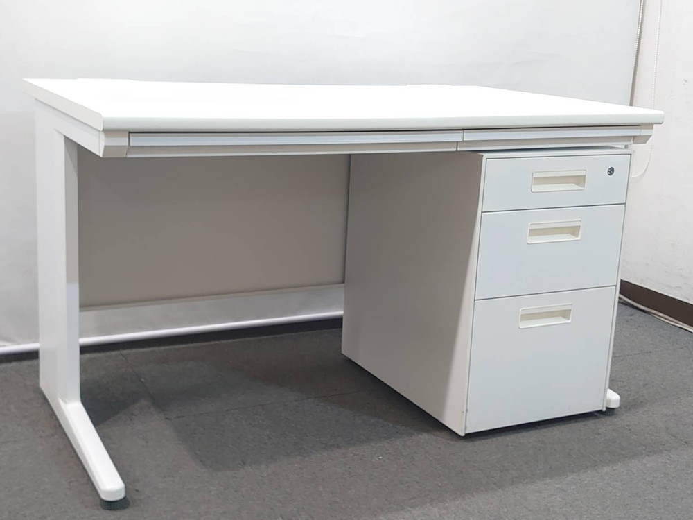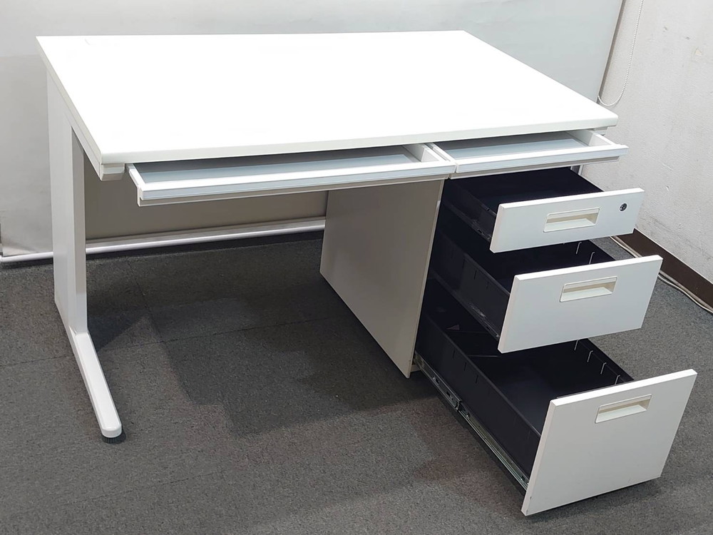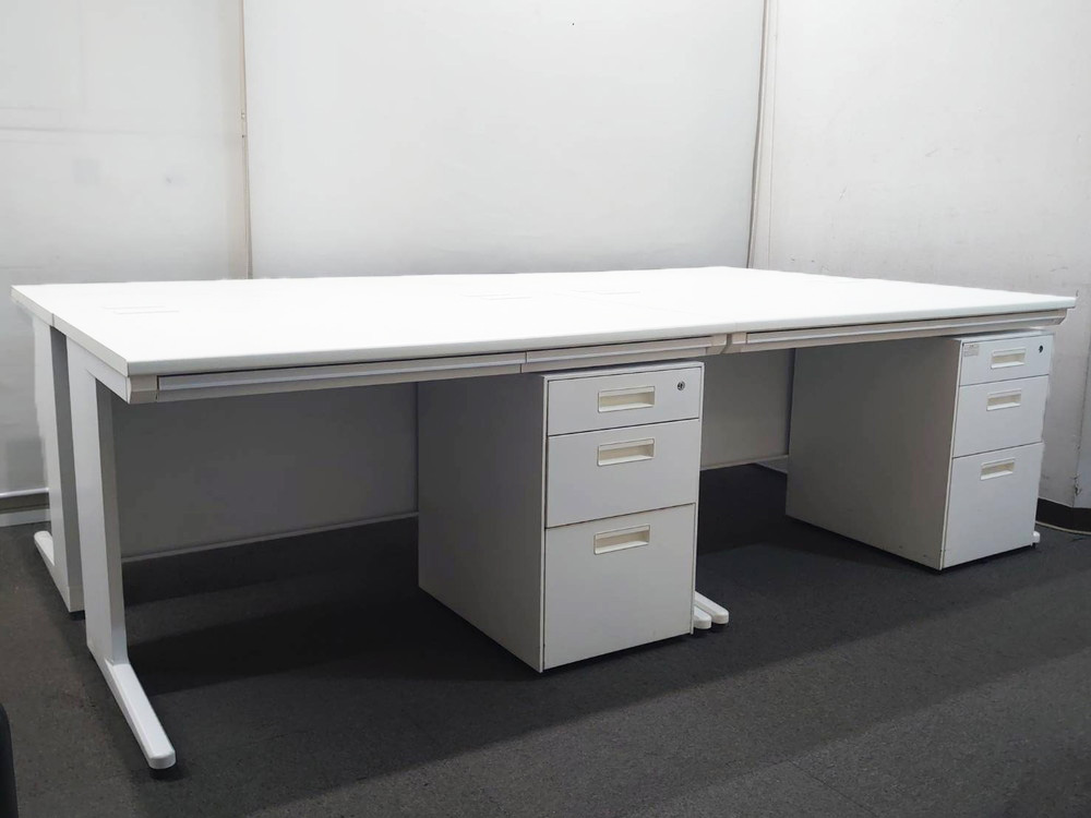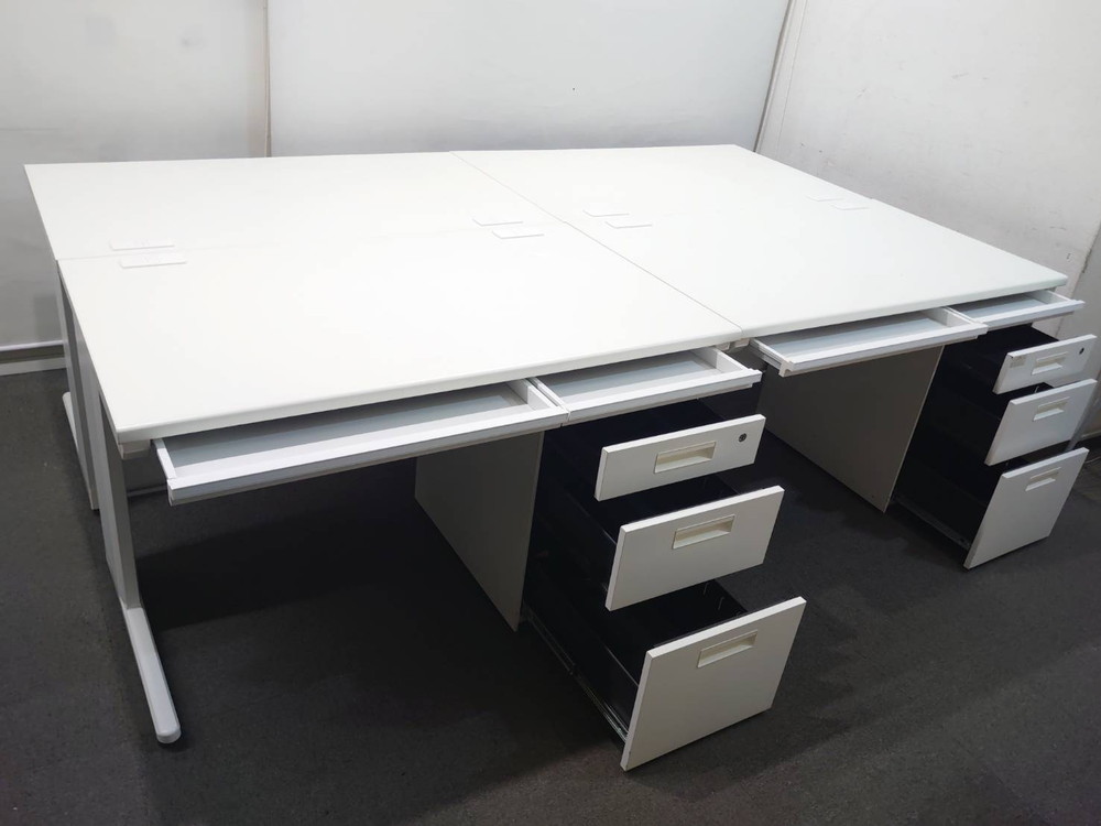 デスクセット 4名用 平机+3段ワゴン W1200 プラス ホワイト 中古