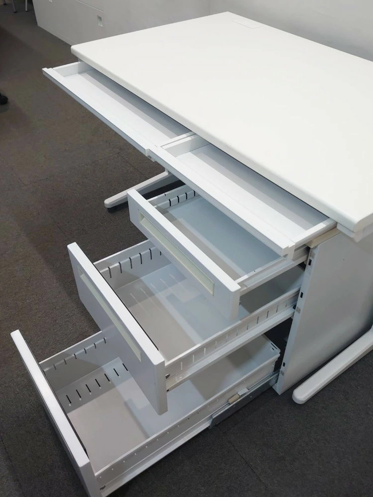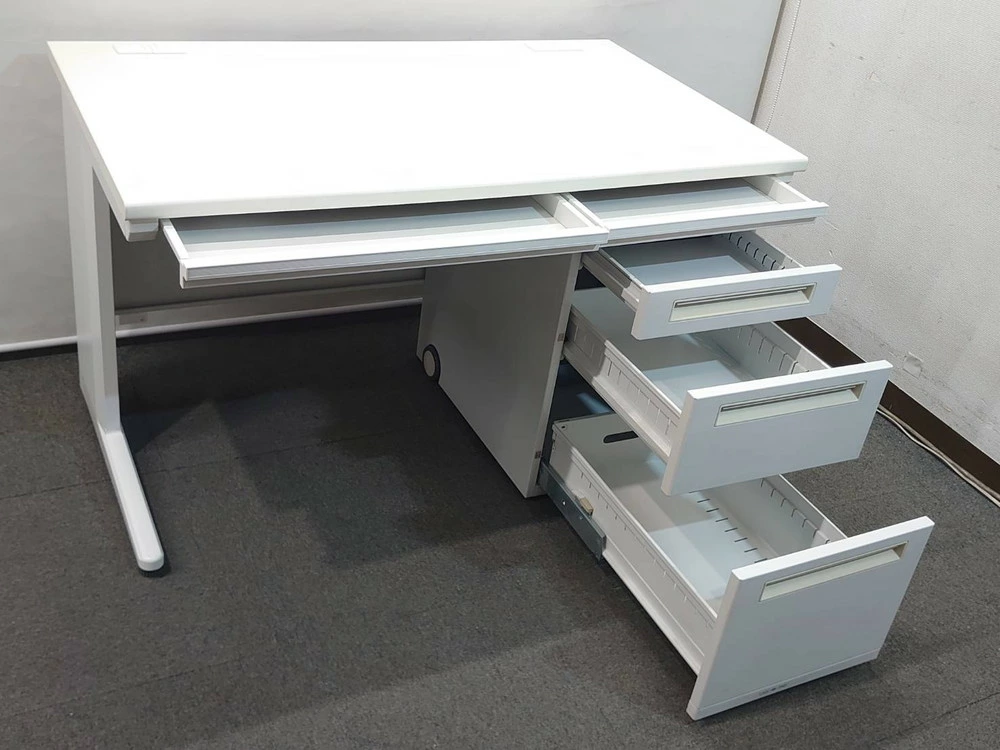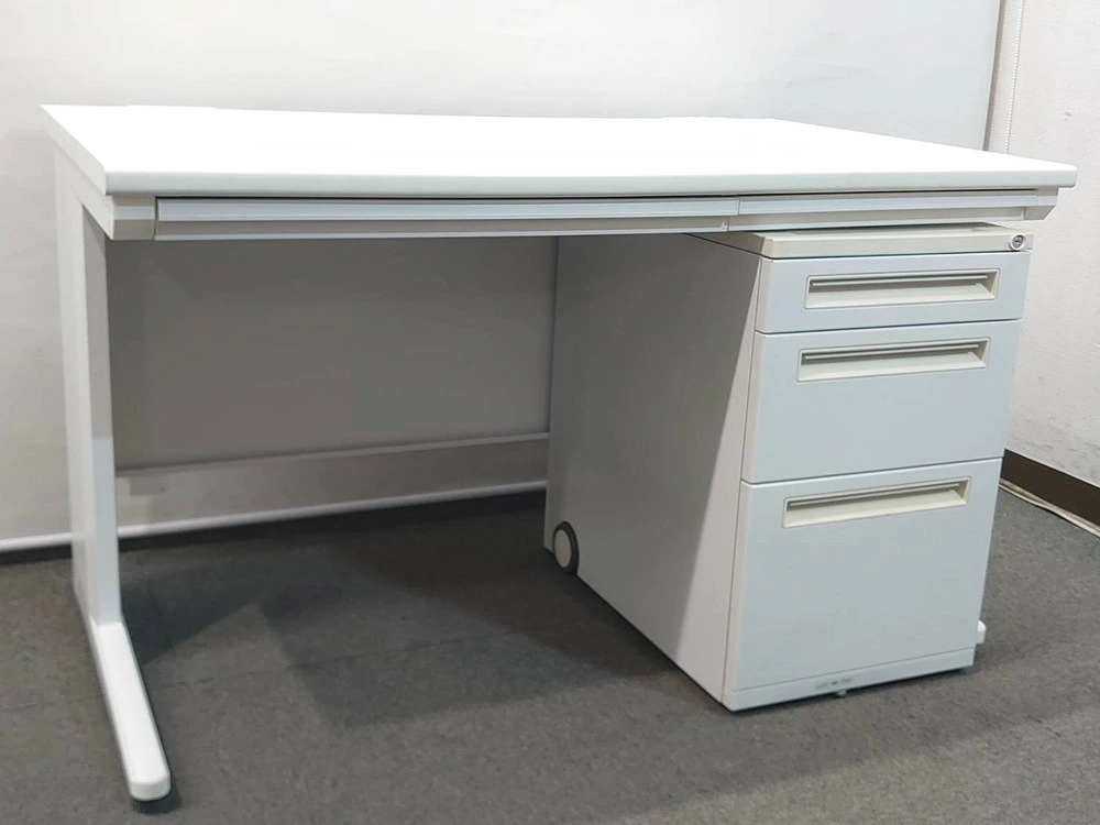 平机+3段ワゴン デスクワゴンセット オフィスデスク ホワイト スチールデスク カギ付き ウチダ フィード 中古