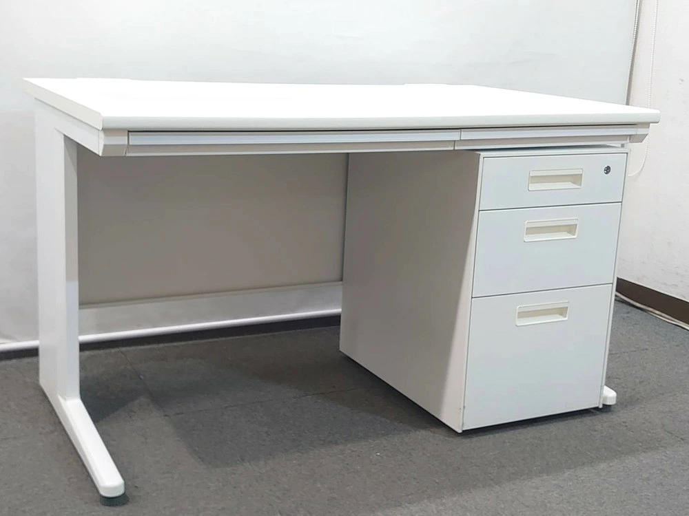 デスクワゴンセット 平机+3段ワゴン W1200 プラス ホワイト 中古