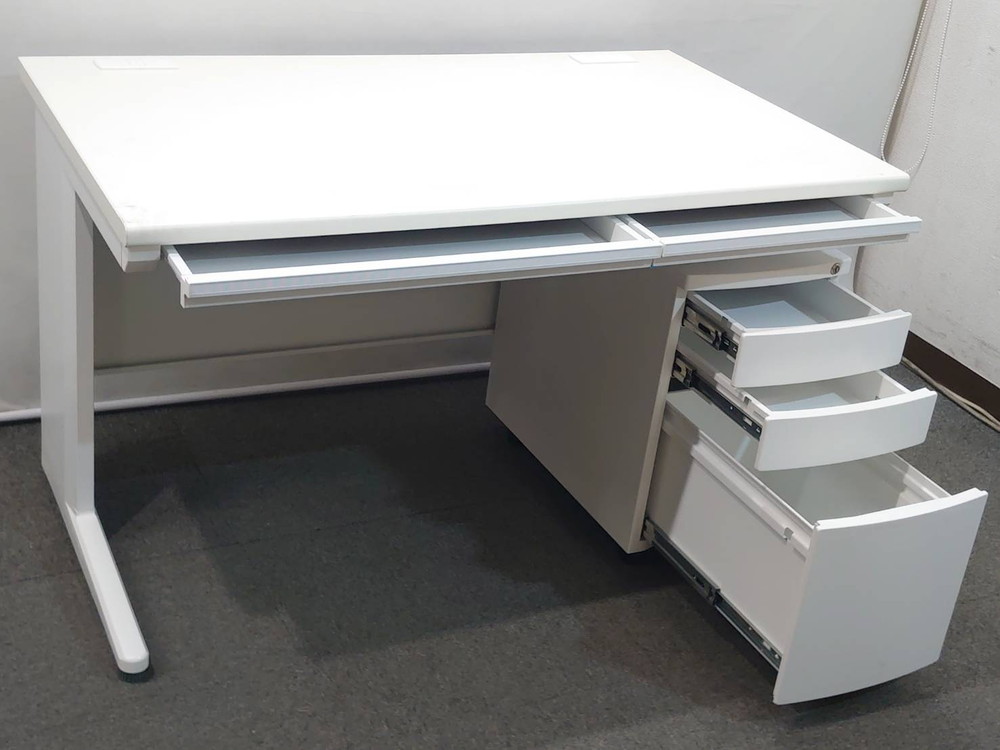 幅1200mmの平机に、収納力のある3段ワゴンを組み合わせたデスクセットの中古品です。