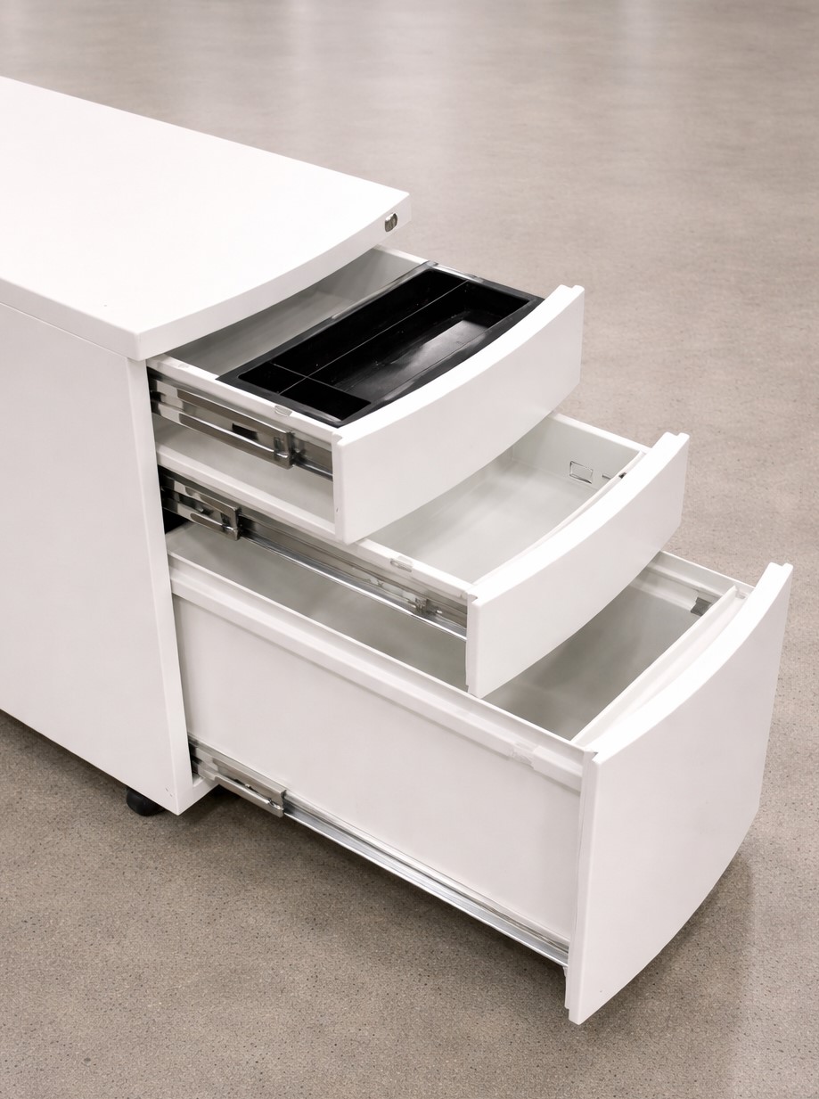 ワゴンは鍵付きで、書類や貴重品の管理にも安心してご使用いただけます。