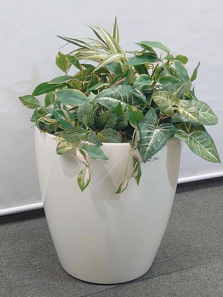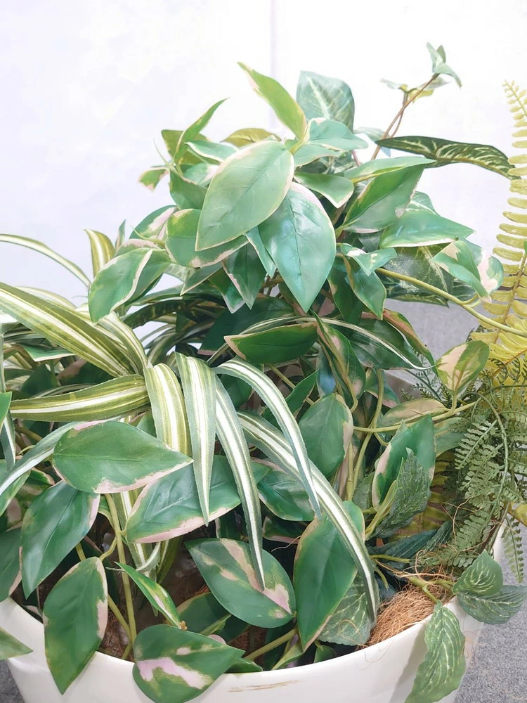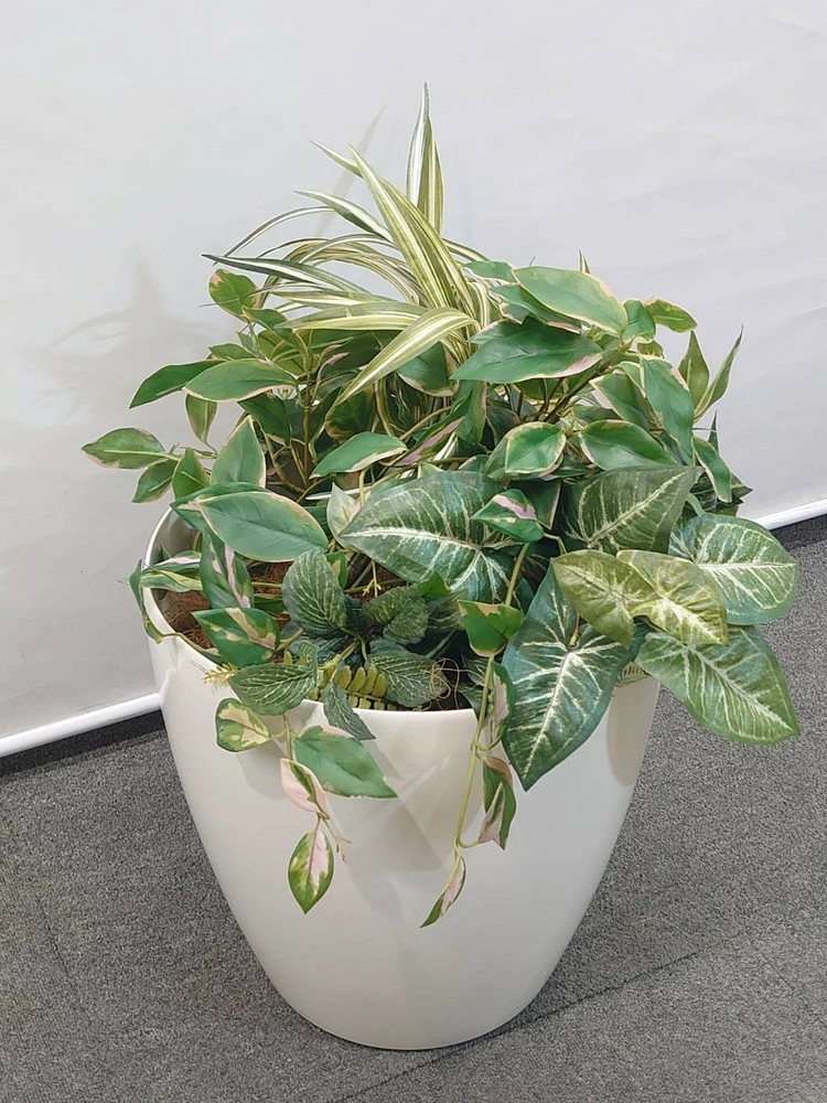 複数のグリーンを組み合わせた、寄せ植えタイプの人工観葉植物です。