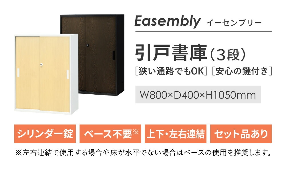 Easembly(イーセンブリー)シリーズの木目タイプ引戸書庫(3段)です。