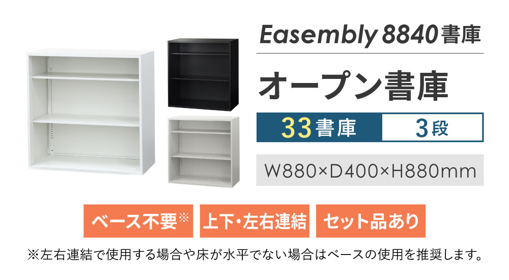 昔ながらの33書庫とA4収納に特化したA4書庫の2タイプからお選びいただけるEasembly8840書庫シリーズ。
