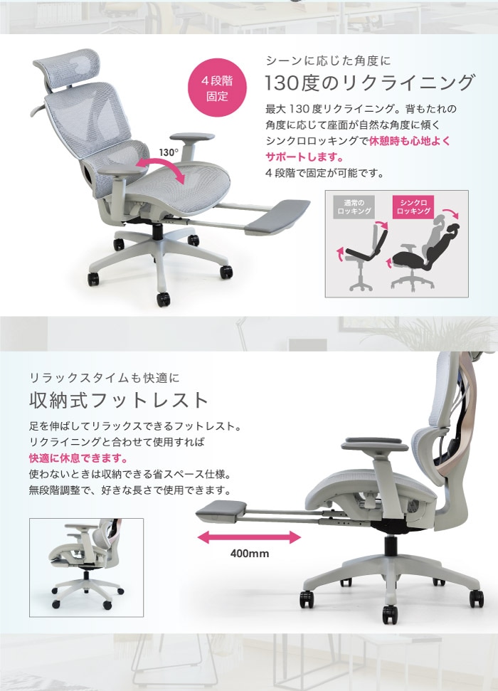 パソコンチェアやワークチェアとしても快適に使える高機能モデルです。