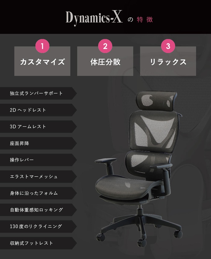 | 商品名 | ダイナミクスエックスチェア マットブラックフレーム ヘッドレスト・ハンガー付き (フルカスタムモデル) |