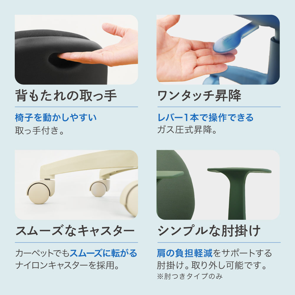 特記事項 ※ループ肘の対応カラーはブラックのみとなります。