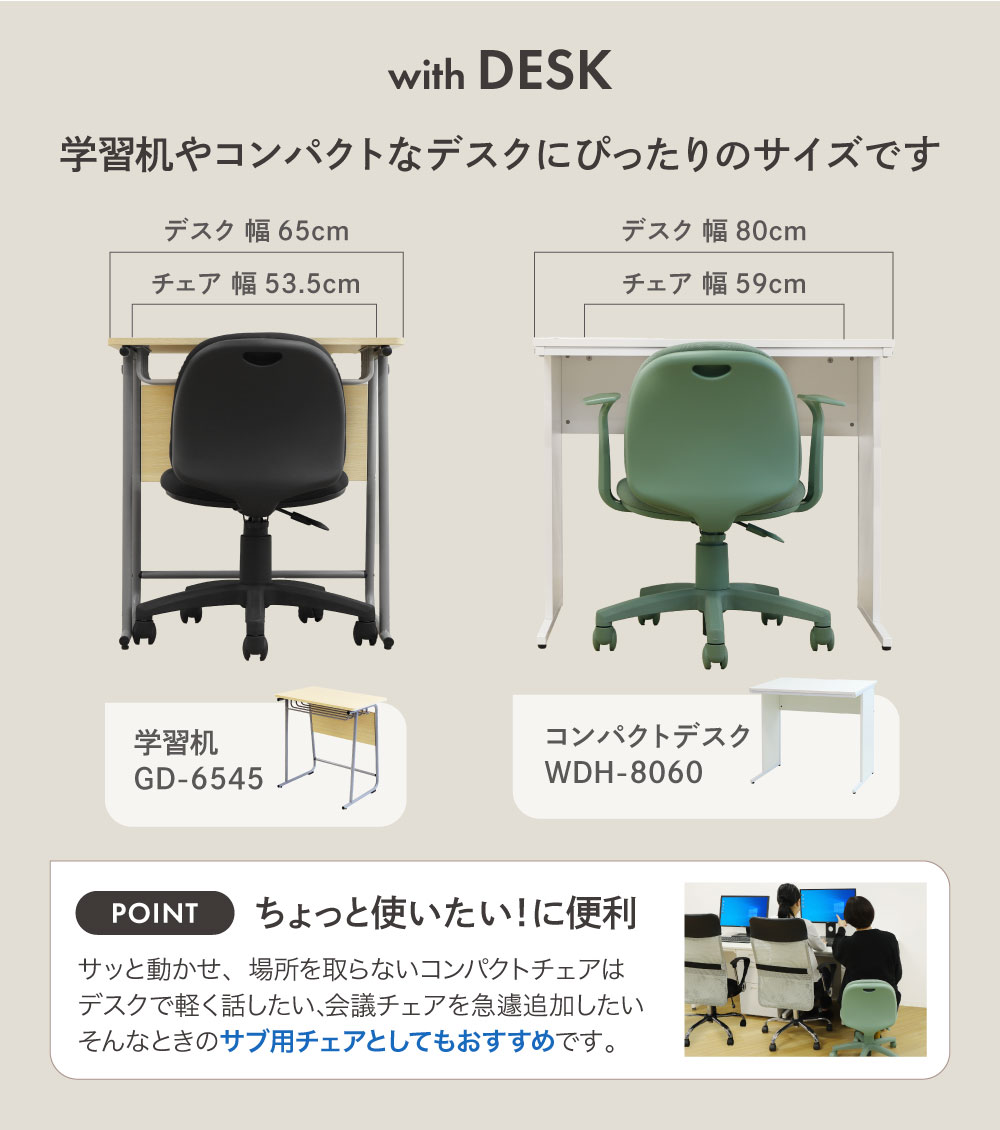 バイヤーおすすめポイント 張地からキャスターまでワンカラーにまとめたデザインが印象的なコンパクトチェアです。