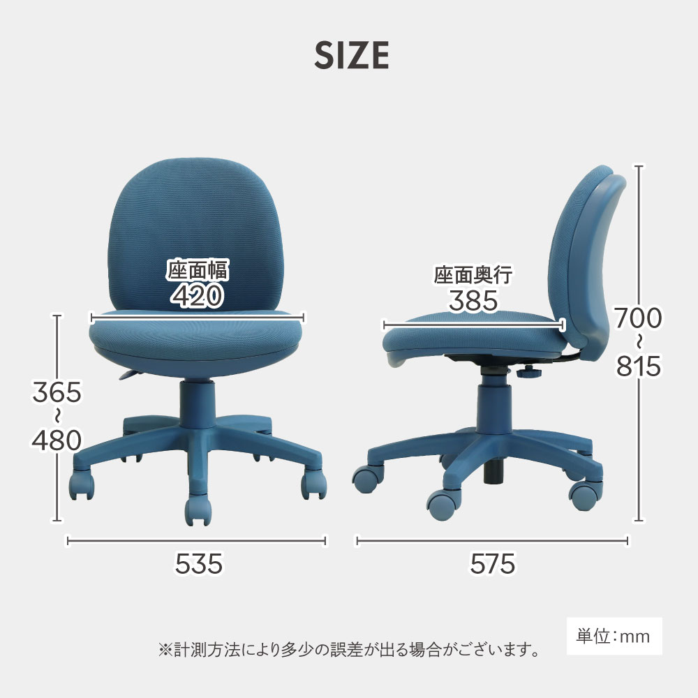 サイズ 外寸:幅535×奥行575×高さ700~815(座面高365~480)mm