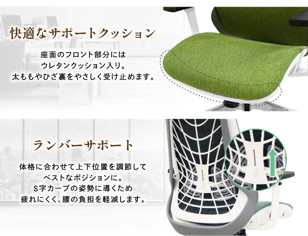 パソコンチェアやワークチェアとしても快適に使える高機能モデルです。