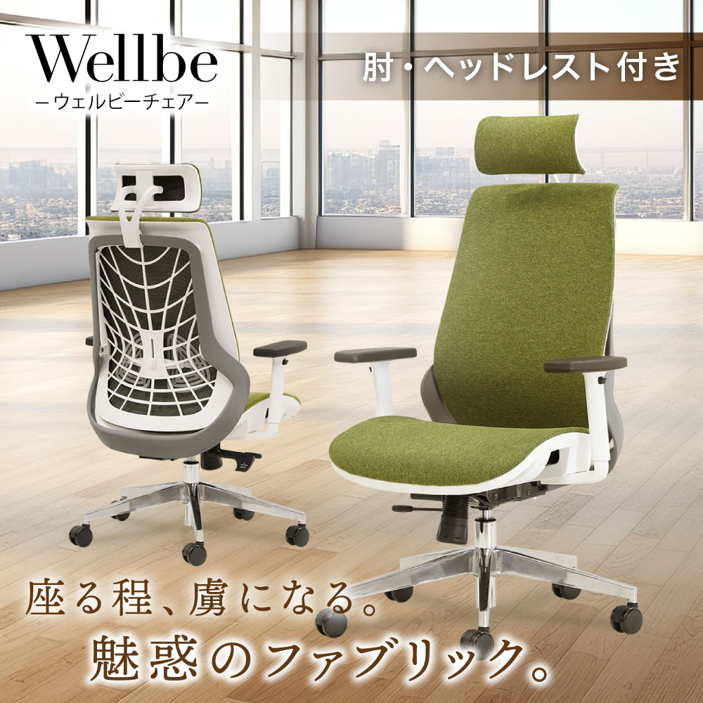 オフィスチェア 肘付き ヘッドレスト付き 布張り WLB-2AH ルキット ハイバック リクライニング 新品