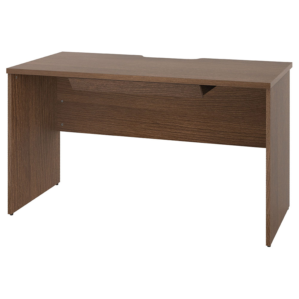 パネル脚のシンプルなデザイン、天板には配線切り欠きがあり向かい合わせや壁付けレイアウトに対応。