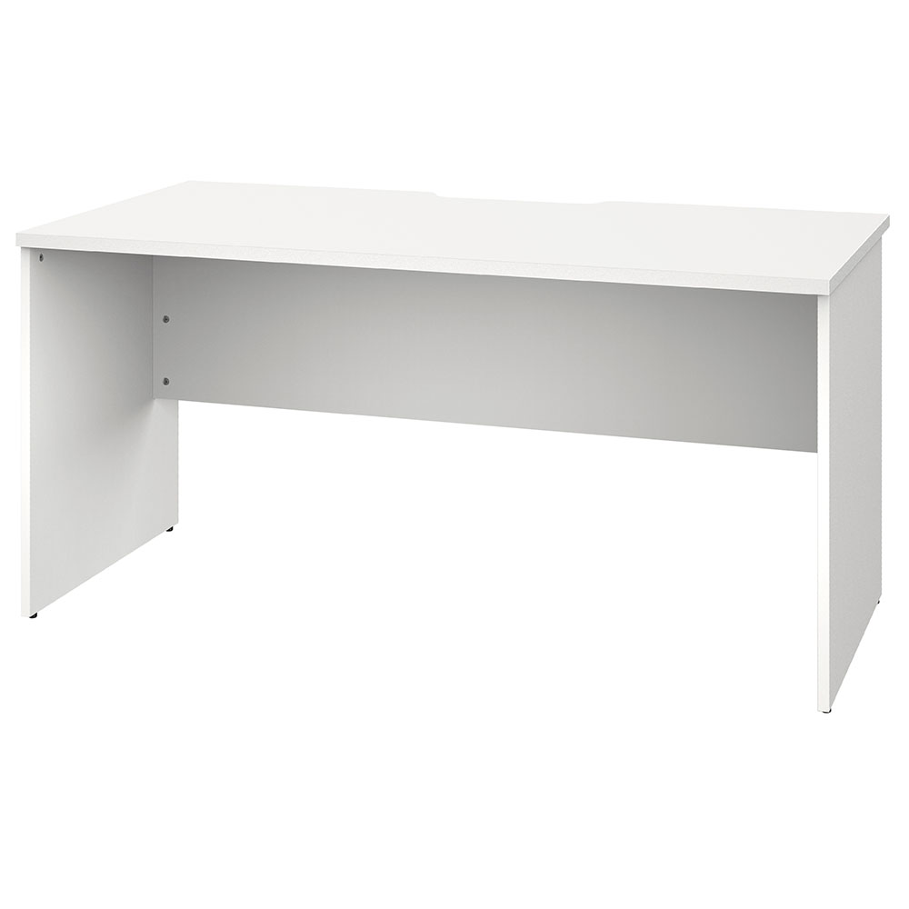 パネル脚のシンプルなデザイン、天板には配線切り欠きがあり向かい合わせや壁付けレイアウトに対応。