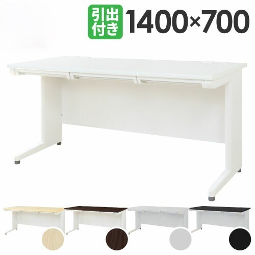 新品商品のご案内です。幅1400mm×奥行700mmの使いやすいサイズの平机です。シンプルなデザインで在宅ワークからオフィスまで幅広くご利用いただけます。引き出し付きのため書類収納にも便利で、天板は5色からお選びいただけます。