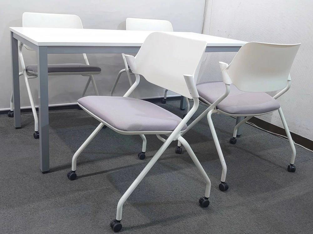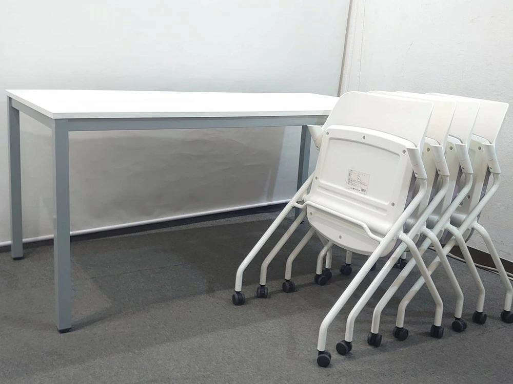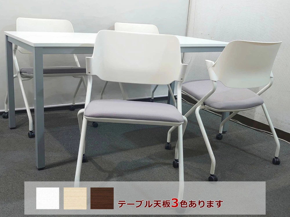 ミーティングセット テーブル3色あり 会議チェア スタッキングチェア スタックチェア キャスター付きチェア 中古
