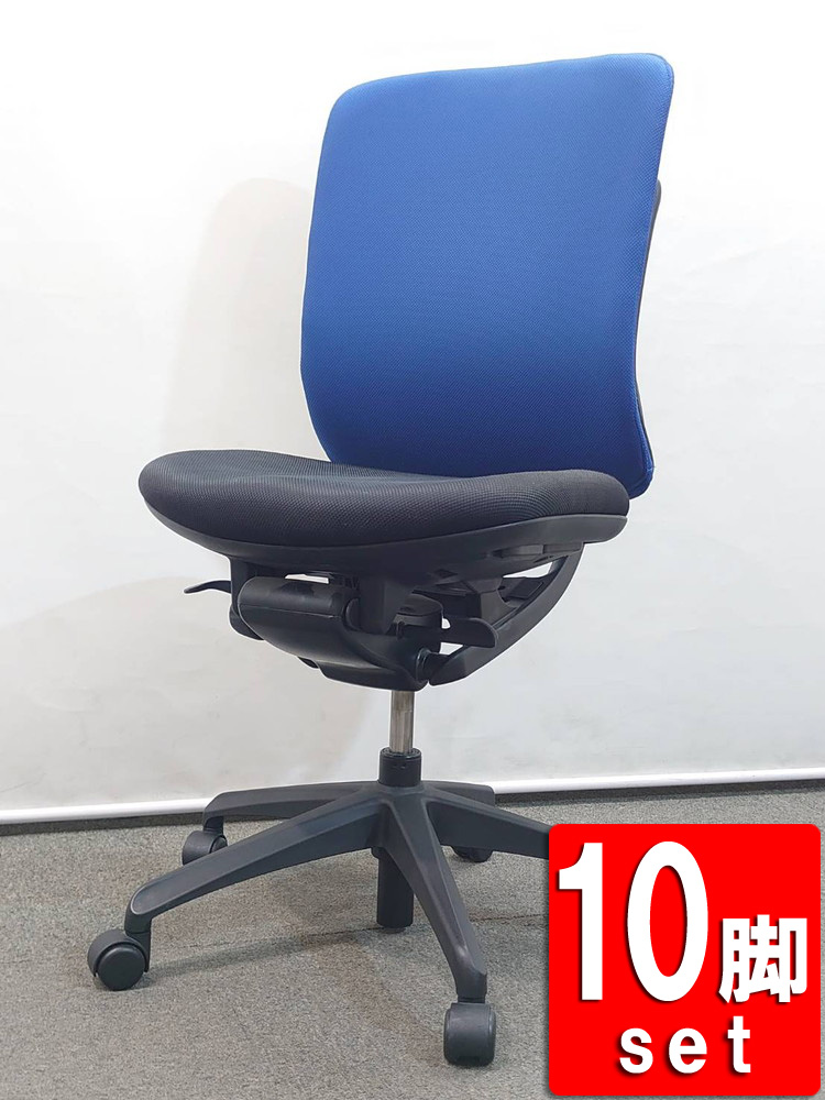 地域限定送料無料 オフィスチェア 10脚セット イナバ イエラ 肘なし キャスター付き ブラック×ブルー 中古