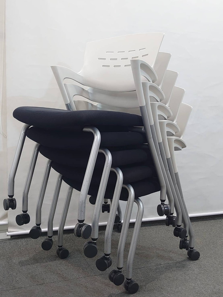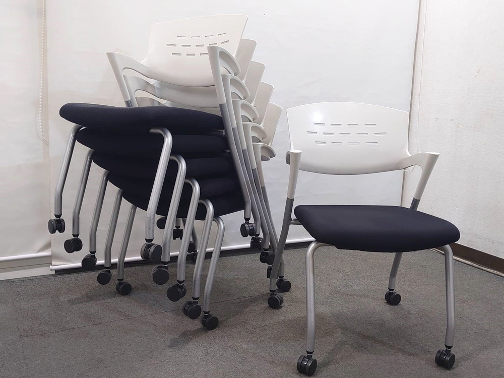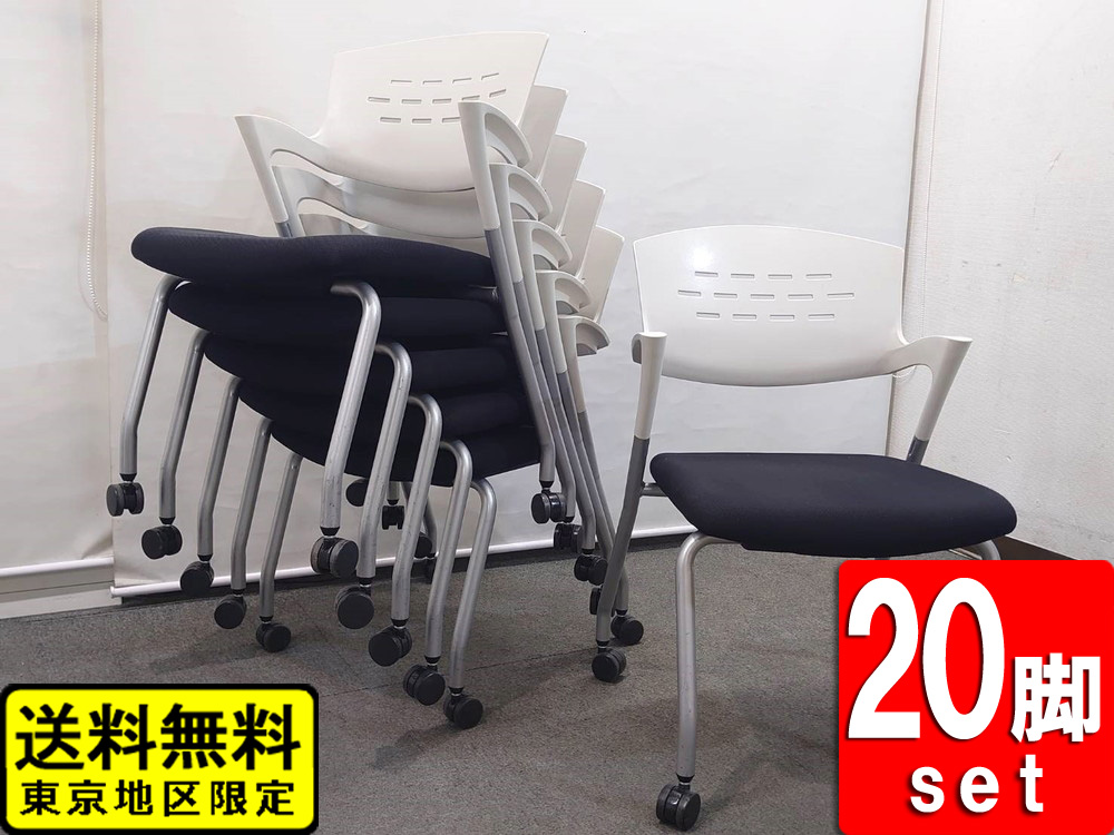 会議チェア 20脚セット イナバ スタッキングチェア キャスター付き 肘付き 中古