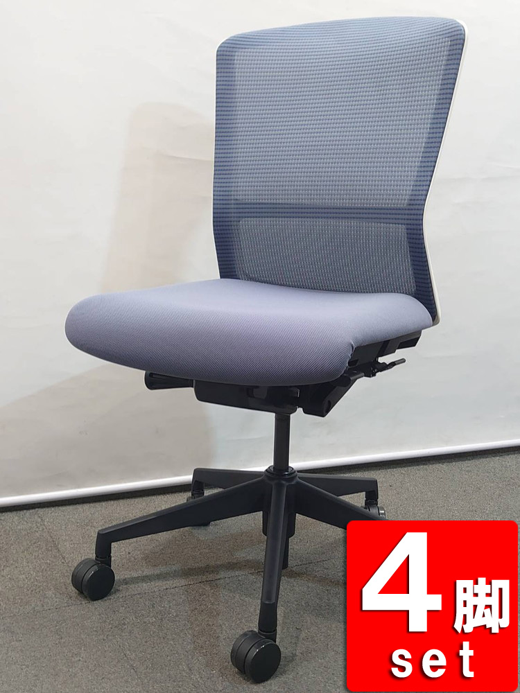 ウチダ製 メッシュタイプのオフィスチェア ELA2-00B、中古の4脚セットです。