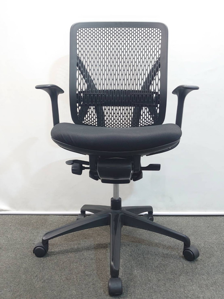 (固定肘付き メッシュ張り ガス圧式上下昇降機構 ロッキング機構 座面奥行調節機構 ランバーサポート付き)