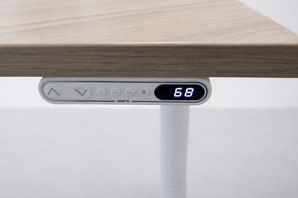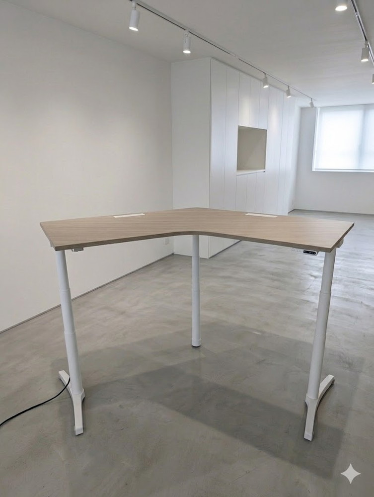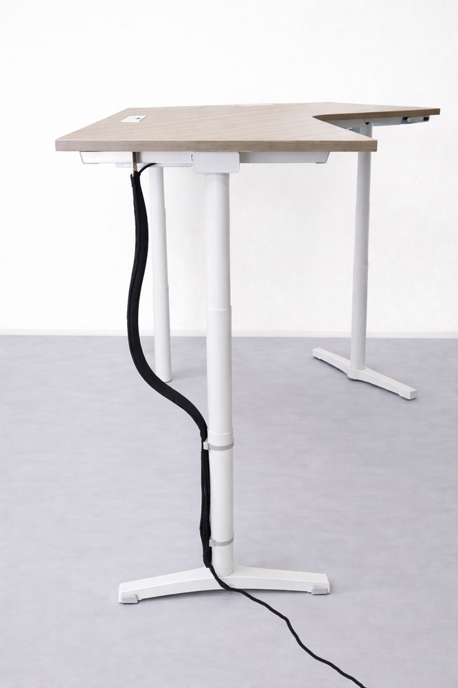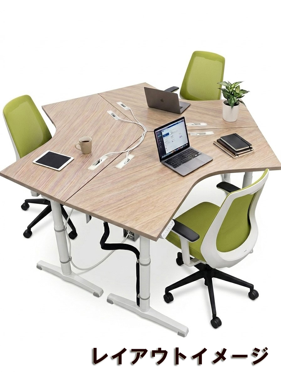 イトーキ製の電動昇降ブーメランデスク3台セットです。上下昇降機能により高さ680~1280mmの範囲で調整が可能で、ミーティングや作業用途に合わせて柔軟にご使用いただけます。配線口付きで、ボタンタイプのコントロールパネル(高さ表示インジケーター付き)を備えております。