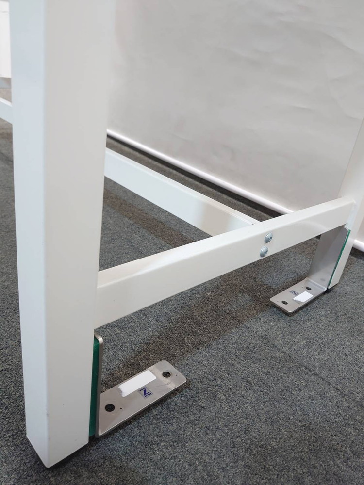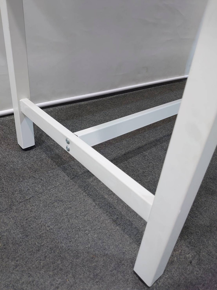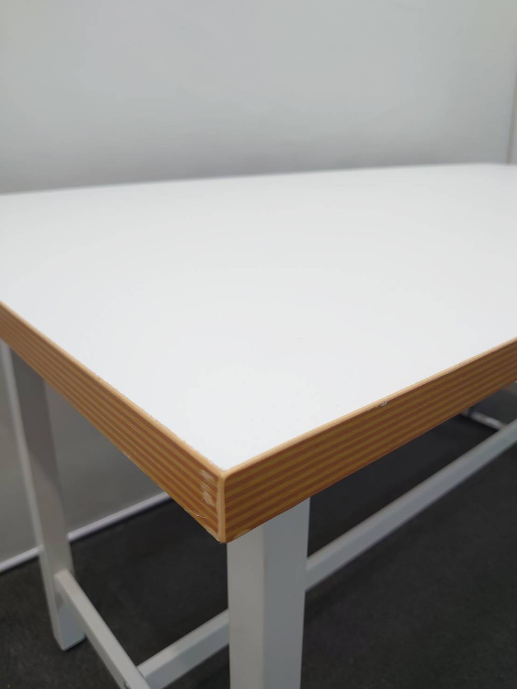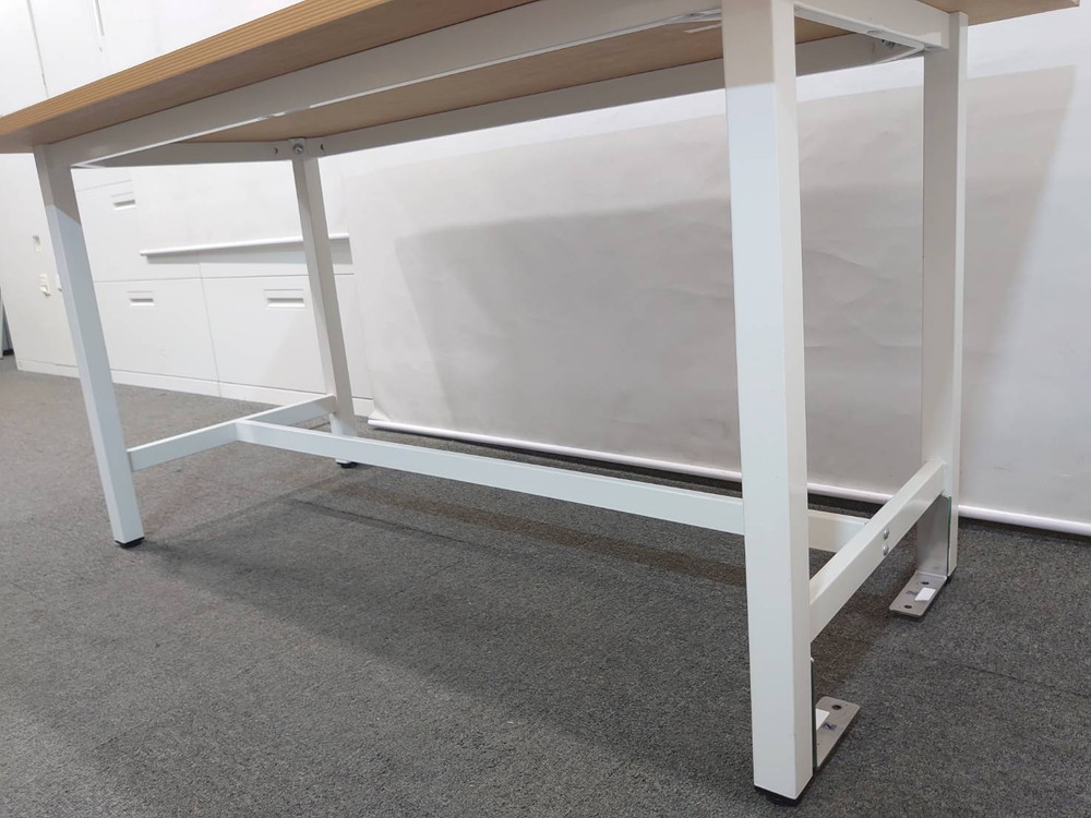 頑丈な脚部構造と厚みのある高圧メラミン化粧仕上げの天板が特徴です。