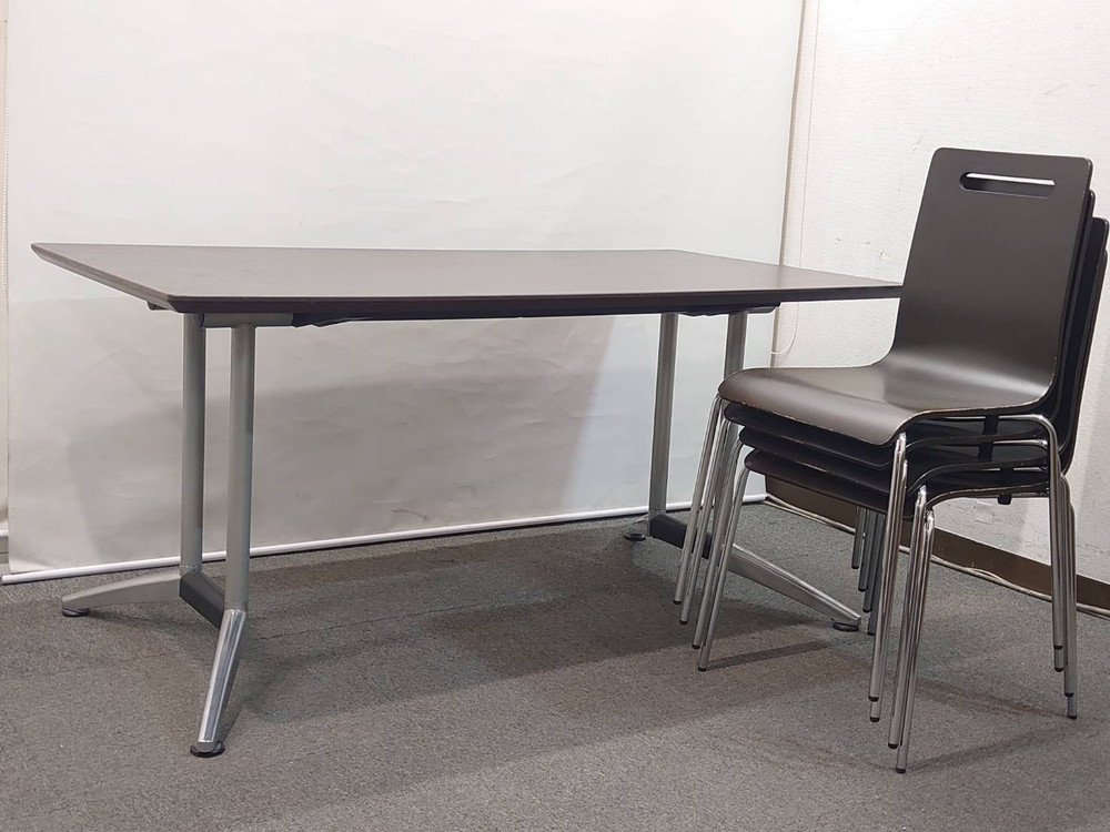 オフィス家具セット 会議セット 4人用 会議テーブル W1500 ウチダ プライウッドチェア オリバー 中古