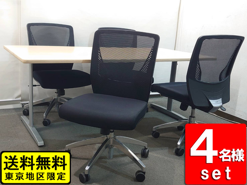 会議セット 4人用 W1800 会議テーブル オフィスチェア オカムラ 中古