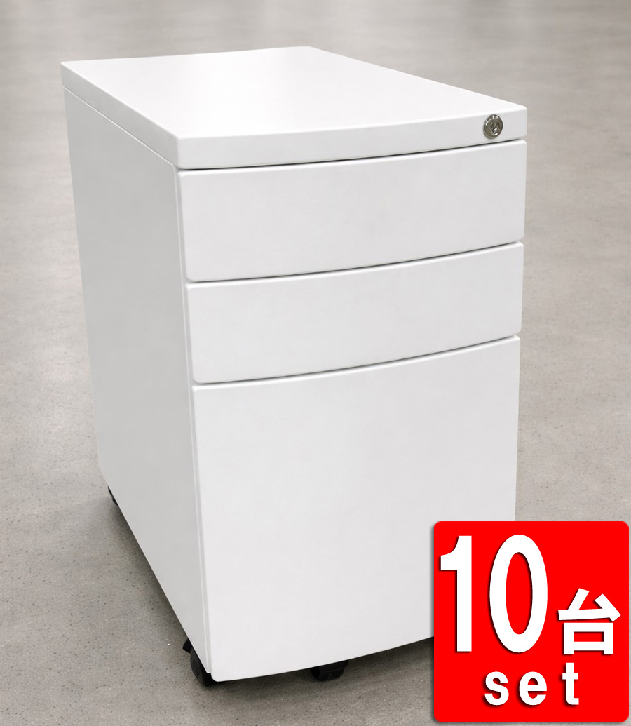 在庫80台以上 地域限定送料無料 3段 ワゴン 10台セット H558 袖机 脇机 デスクワゴン 井上金庫 カギ付き 中古