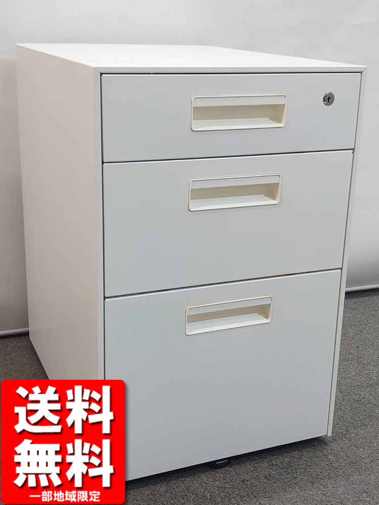 在庫10台以上 3段ワゴン プラス W395 H615 キャスターワゴン ホワイト カギ付き AS-F046SC-3 日本製 中古