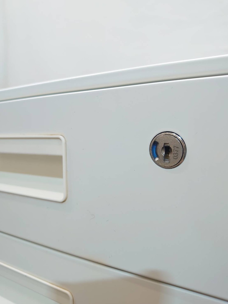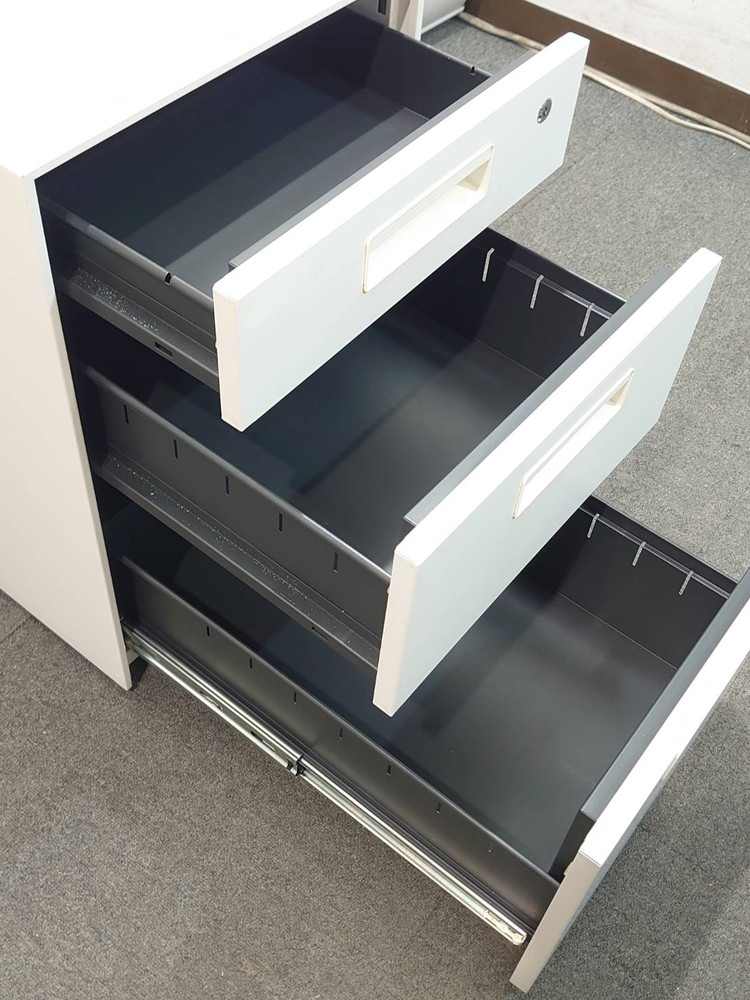 幅395mmのスリム設計ながら、書類や小物を効率よく整理できる3段仕様で、鍵付きのため大切な書類の管理にも適しております。