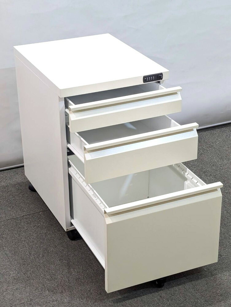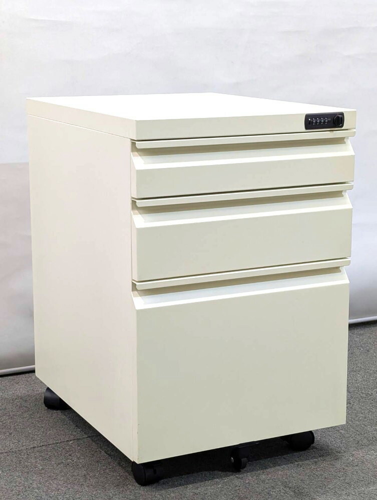 訳あり特価 3段 ワゴン H600 ダイヤル錠 袖机 脇机 デスクワゴン サイドワゴン キャスターワゴン 中古