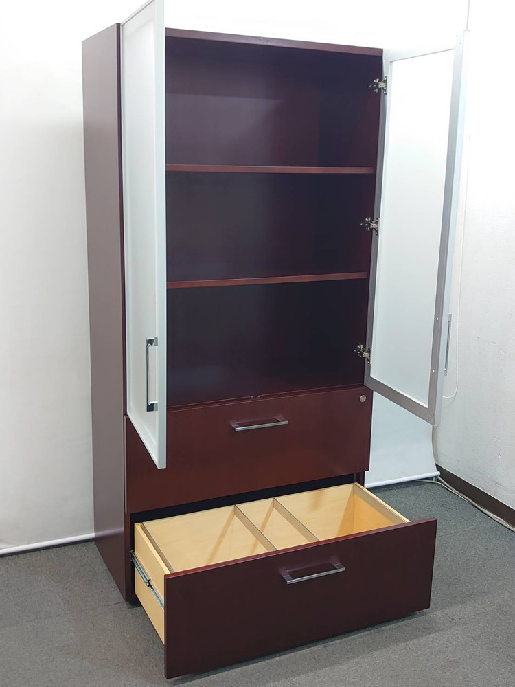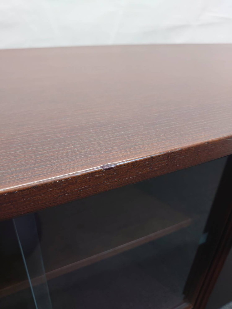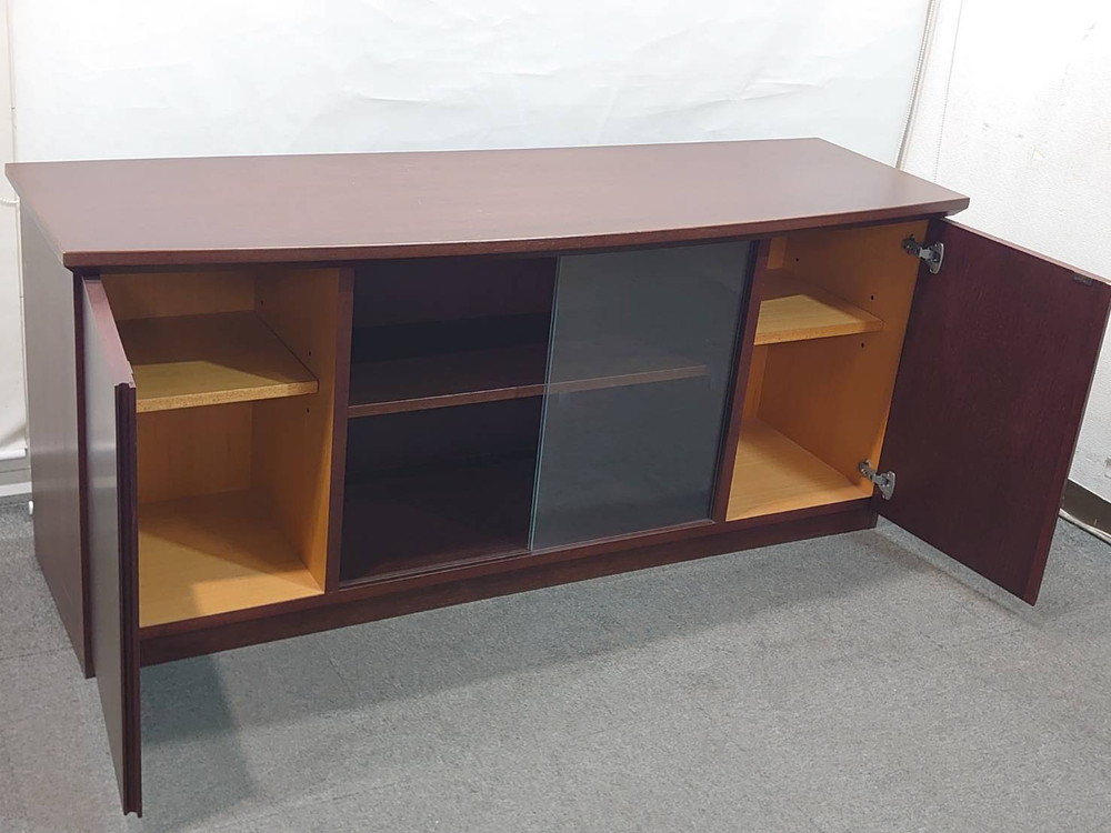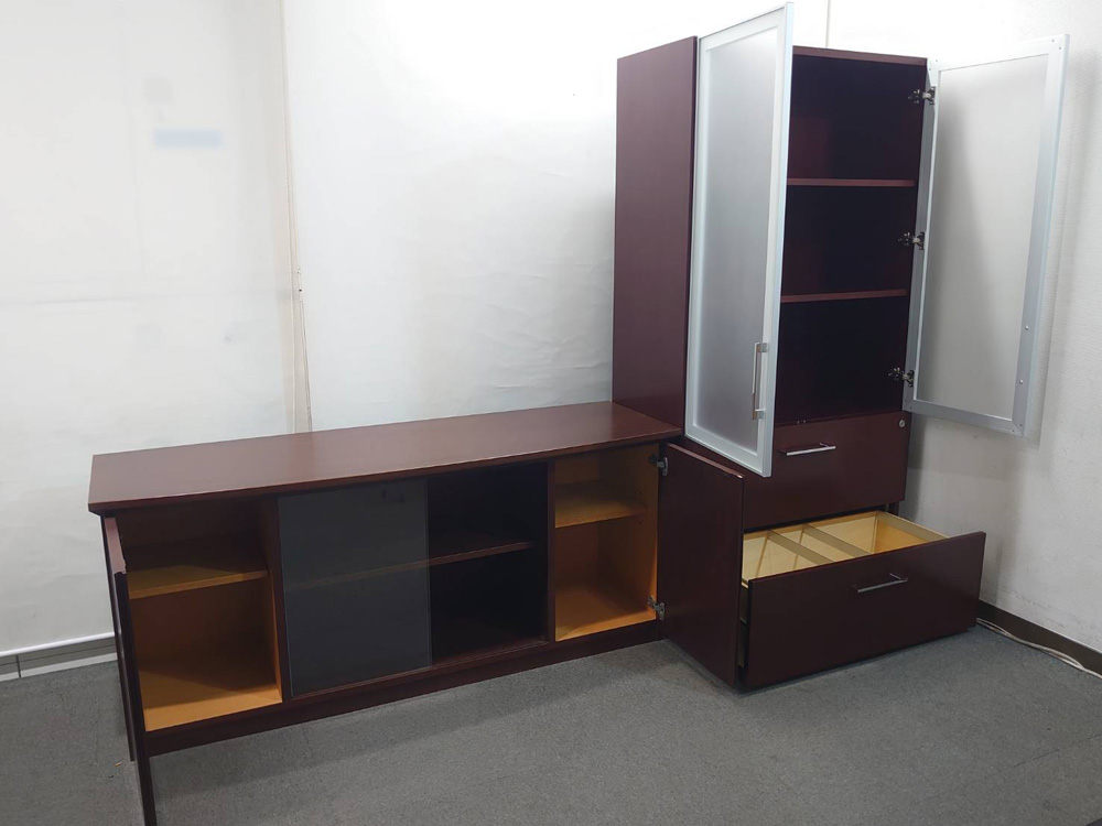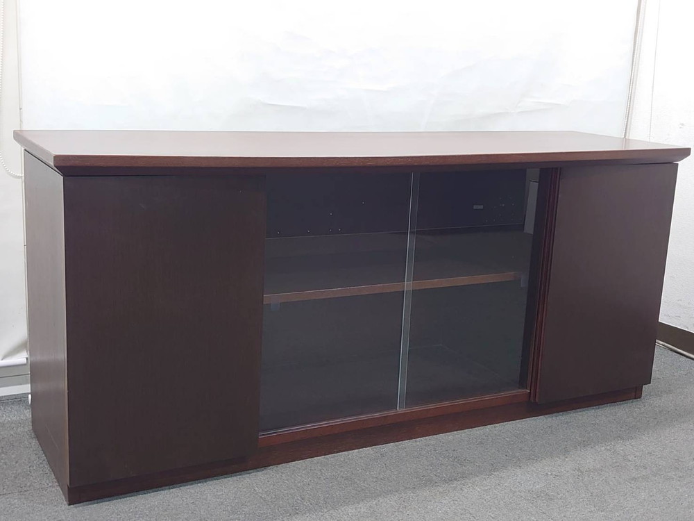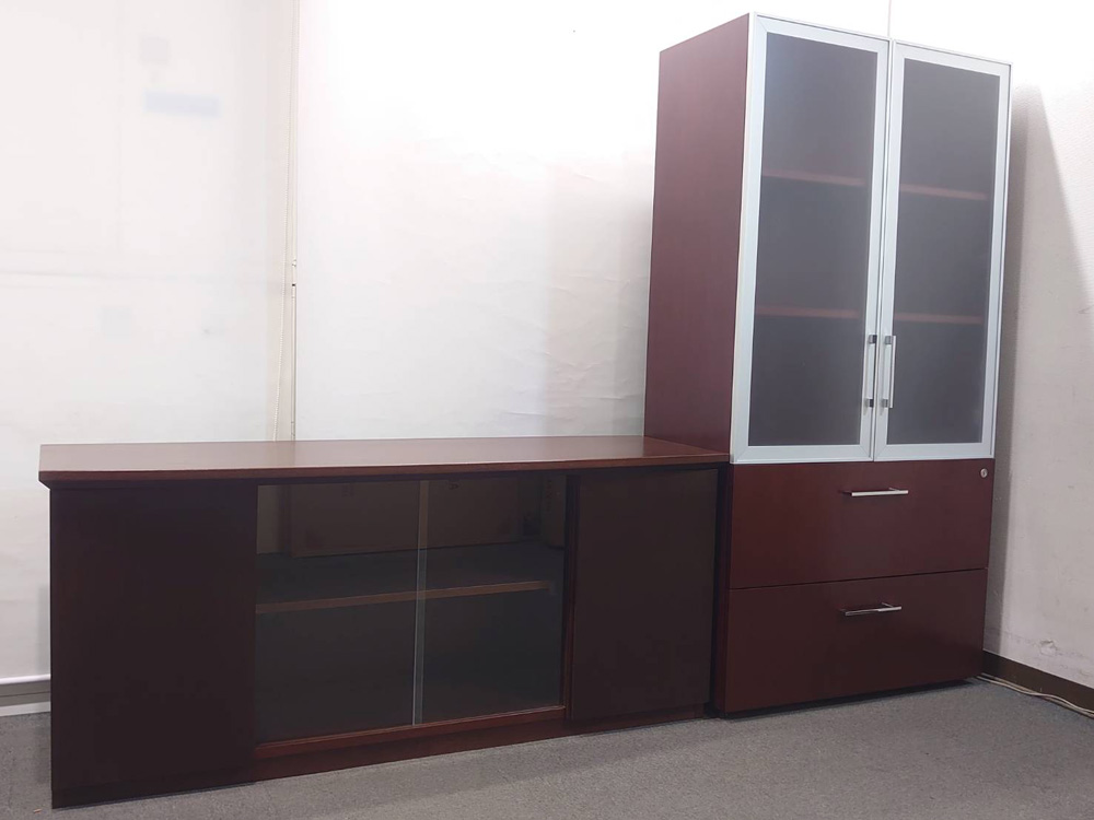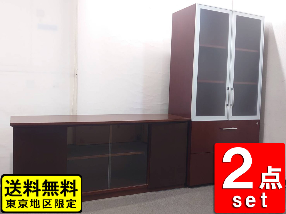 役員家具 2点セット 書庫 木製書庫 ガラス扉 ローボード キャビネット 中古